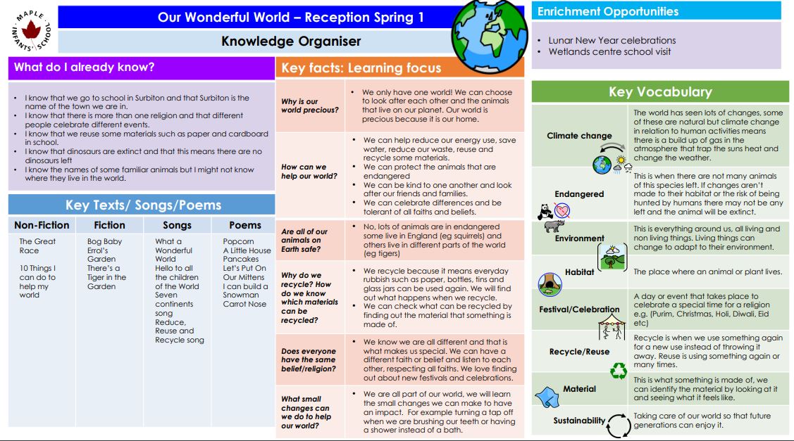 Each week, we detail our learning focus and key vocabulary on our weekly overviews emailed home. Use the knowledge organiser to support your discussion about learning at home and prepare your child for their future learning in school. This will mean that pupils come to school already having some understanding of the key vocabulary and learning.
