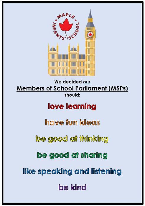 Our School Parliament represents the views of all children at Maple Infants’ School and provides them with the opportunity to share their views.